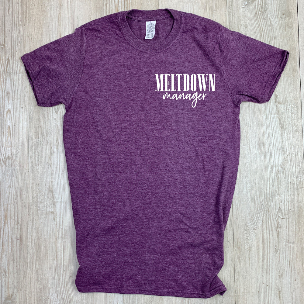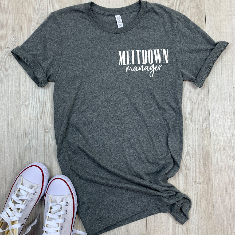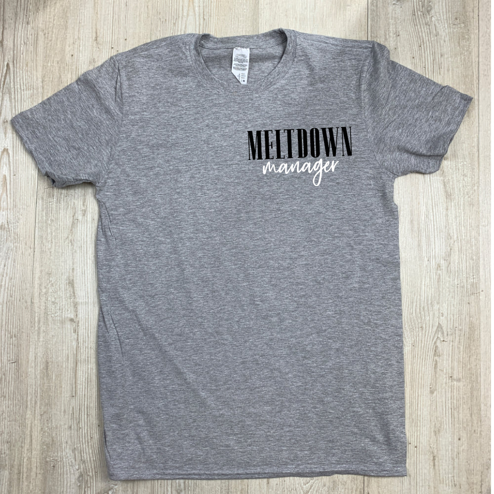 Too true Mum slogan tee. Meltdown Manager slogan. Perfect to dress up, or dress down!