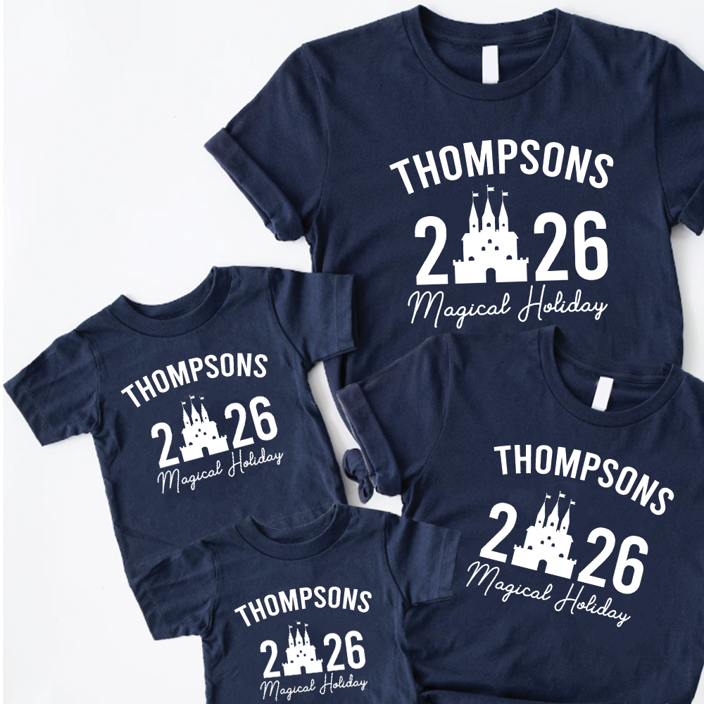 Don't forget to pack these perfect twinning tops for your next family Magical trip! Customised with family surname and year of the holiday, these tops are perfect for mantle top framed photos. Items in set are sold separately.