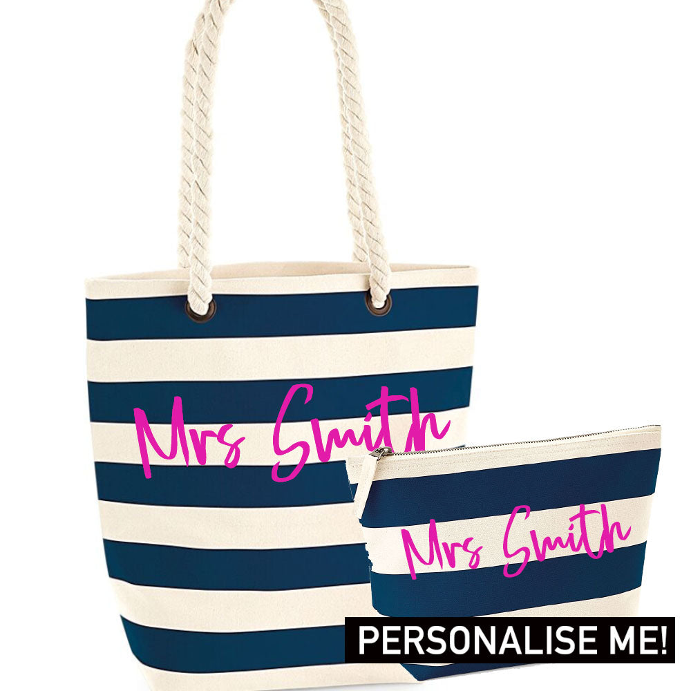 Personalised Mrs Nautical Tote & Accessory Bag Set (MRK X)