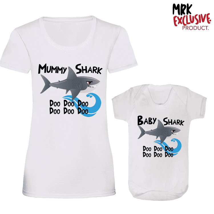 CL Shark Family Mummy and Baby Matching T-Shirt/Vest - White (MRK X)