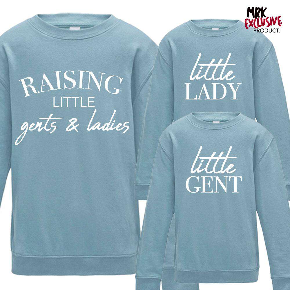 Raising Mini Gents & Ladies Pastel Blue Matching Sweaters (MRK X)