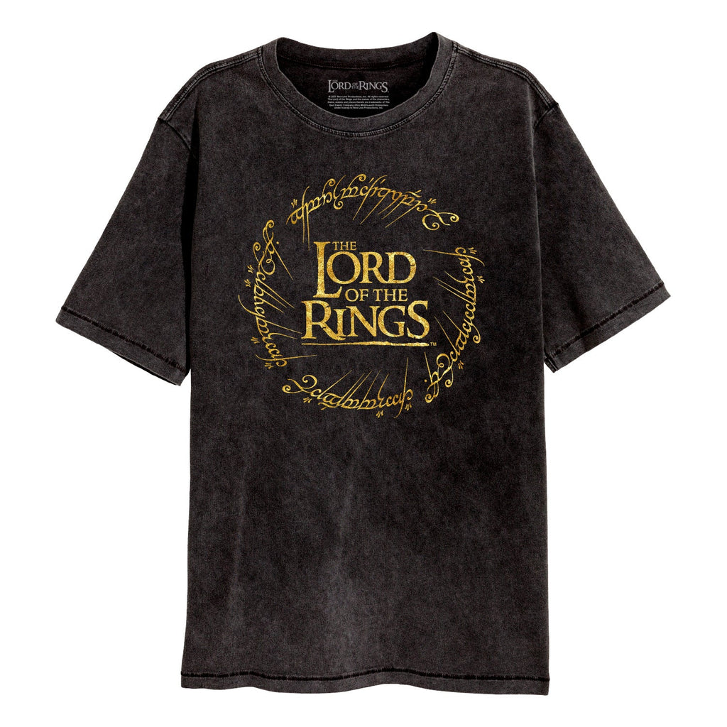 Lord Of The Rings Gold Foil Logo SuperHeroes Inc. Acid Wash T-Shirt