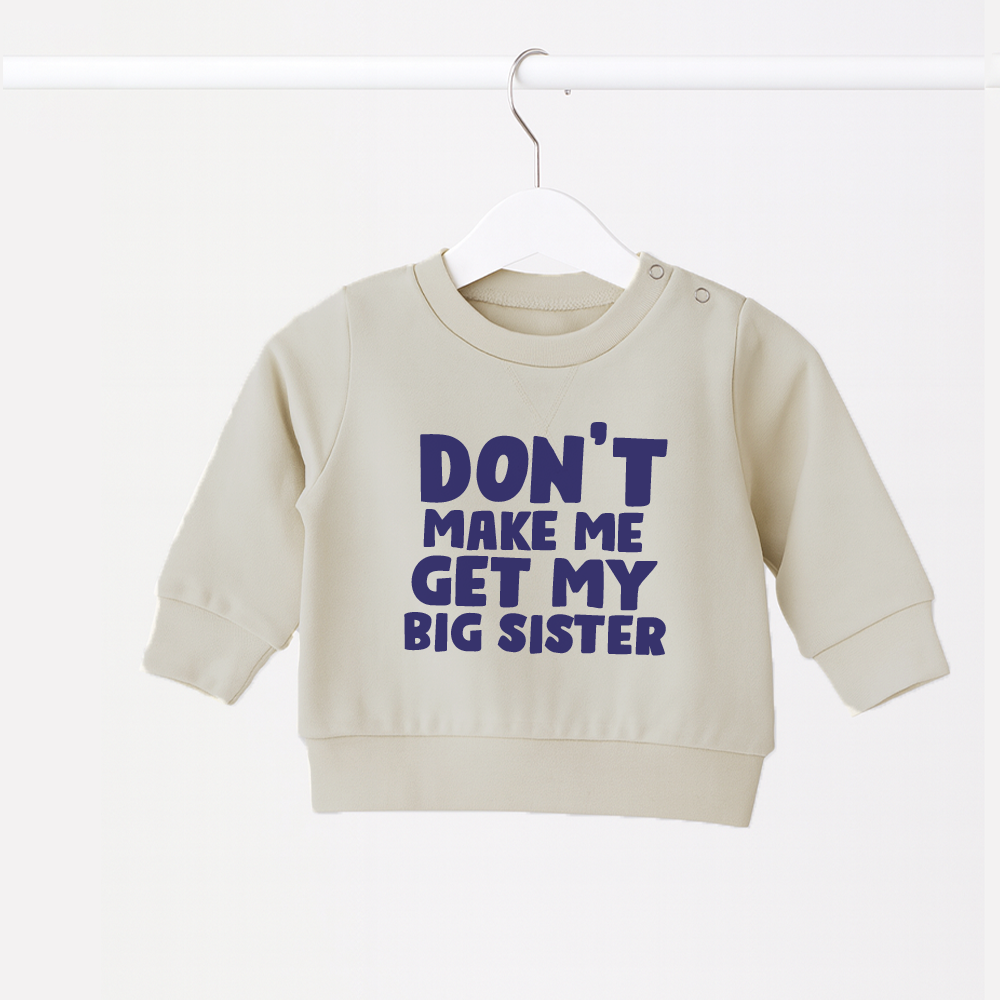 Don't Make Me Get My Big Sister Graphic Light Stone Sweatshirt