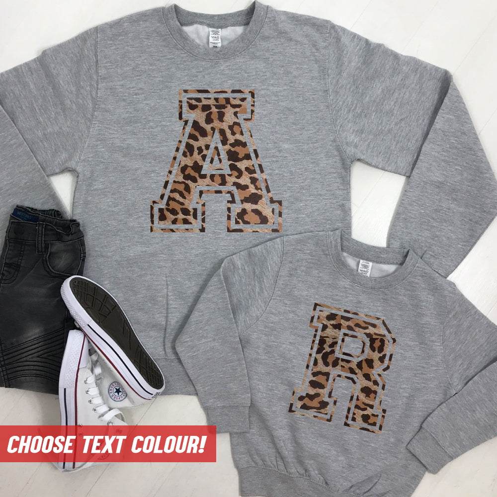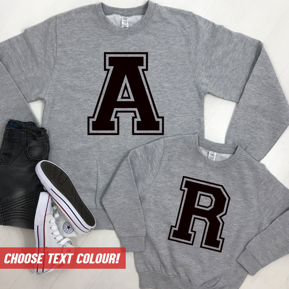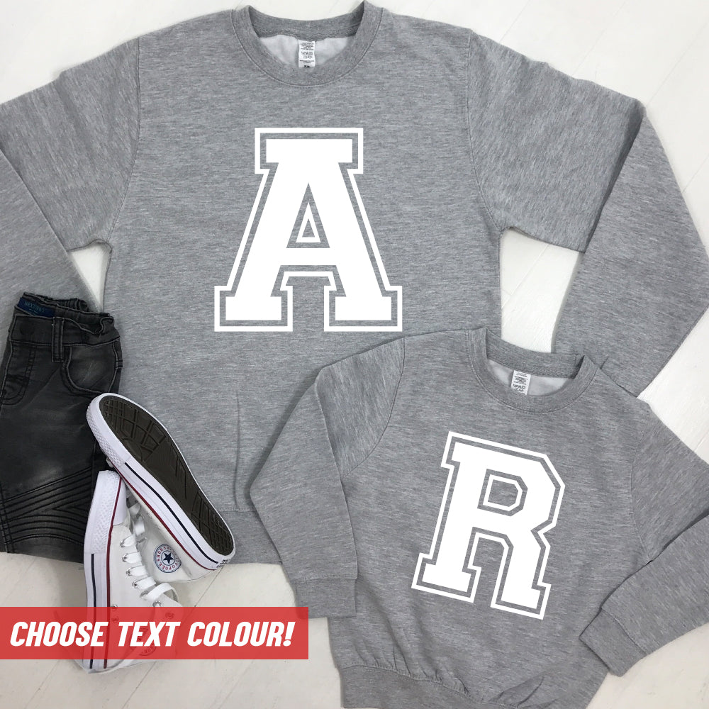 Personalised Adult & Kid Big Initial Matching Sweatshirts Grey (MRK X)