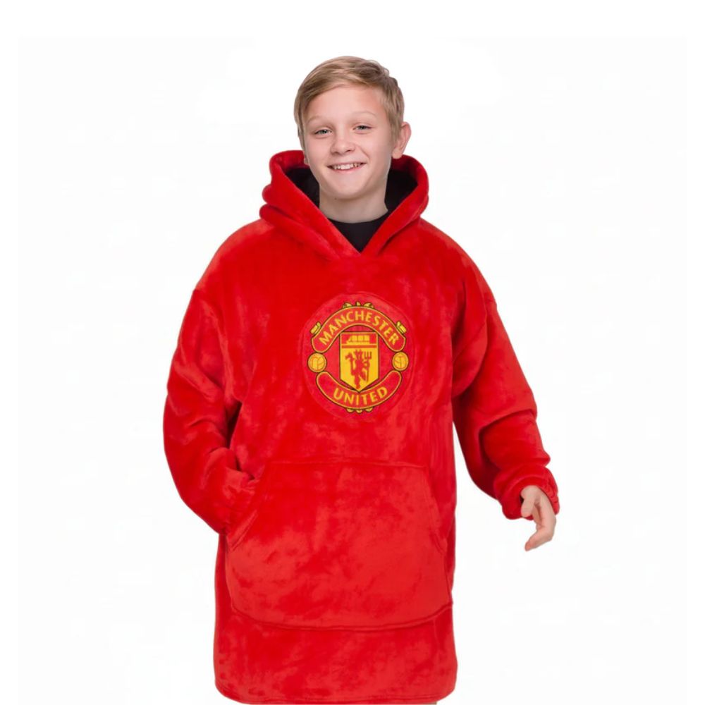 Stay warm and stylish with our officially licensed Manchester United Kids Oversized Hoodie Blanket. Crafted from 100% polyester and fully lined with ultra-soft sherpa fleece, this wearable blanket offers unbeatable warmth and comfort — perfect for chilly winter evenings, watching matches, or relaxing at home. It features a large applique club crest proudly displayed on the chest and a spacious kangaroo pocket for added convenience. The oversized fit allows for easy movement and layering, ensuring maximum comfort. Machine washable for easy care, this Manchester United kids hooded blanket is the perfect gift for any young supporter — ideal for birthdays, holidays, or any special occasion.