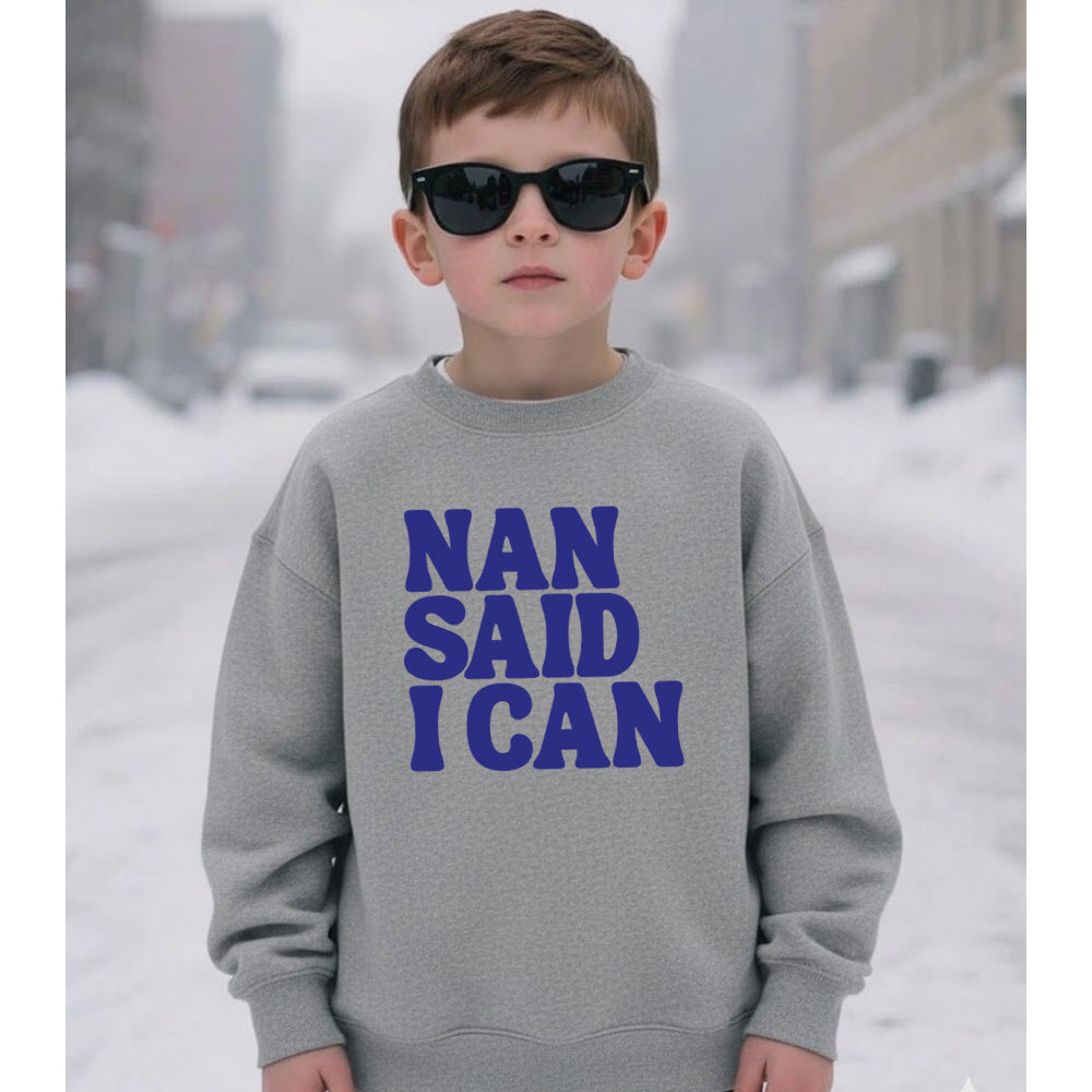 For all those spoilt grandkids... perfect for lounging around Nana's. Make sure to add this to their wardrobe for an all too relatable slogan. Featuring slogan 'Nana Said I Can' slogan with various colour combinations, just add just ideal colour and size separately to your cart