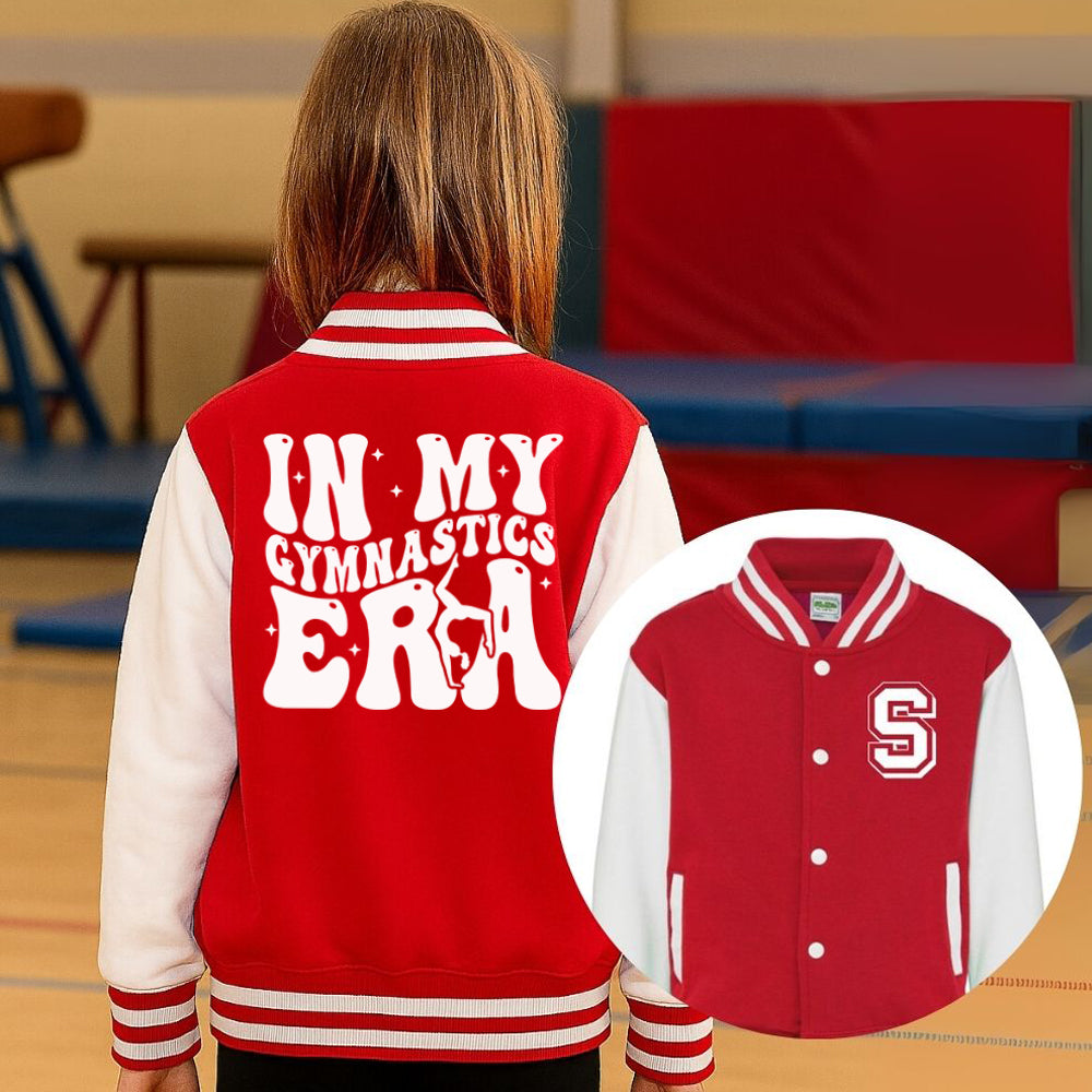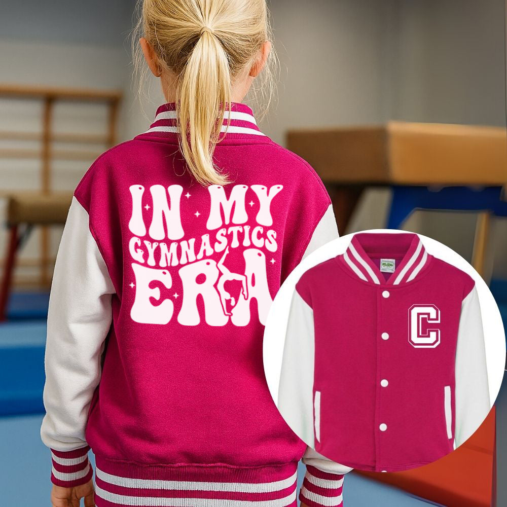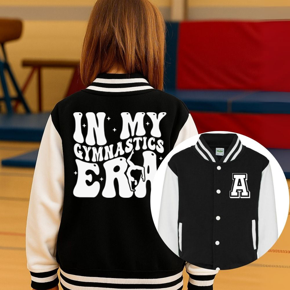 Level up their look with this essential varsity jacket, made for heading to and from class in total icon energy. Featuring the bold "In My Gymnastics Era" design on the back and personalised with their initial on the front, this jacket is giving sporty and stylish.