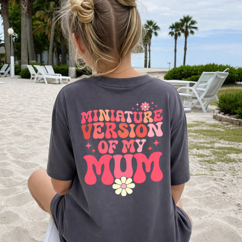 Adorable t-shirt celebrating the special bond between mum and mini-me. This charming design features a playful "miniature version of mum" message, perfect for matching moments and creating lasting memories. Soft, comfortable fabric ideal for everyday wear, whether it's playdates, family outings, or cosy days at home. A delightful gift that lets little ones feel connected to their mum in the sweetest way.