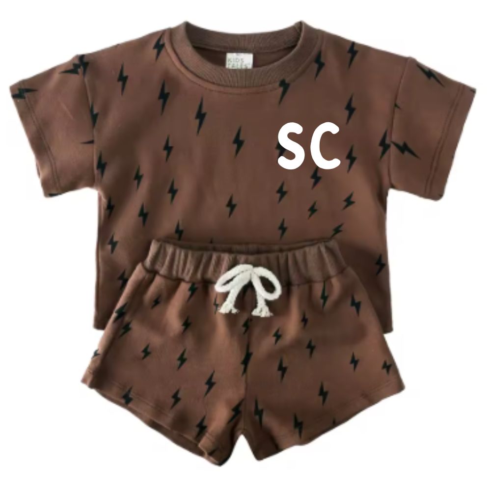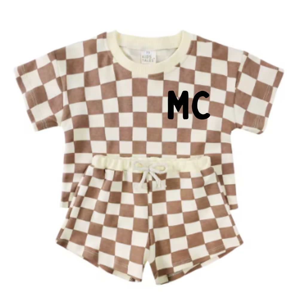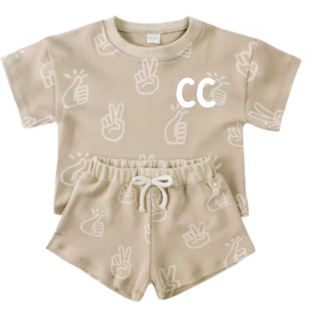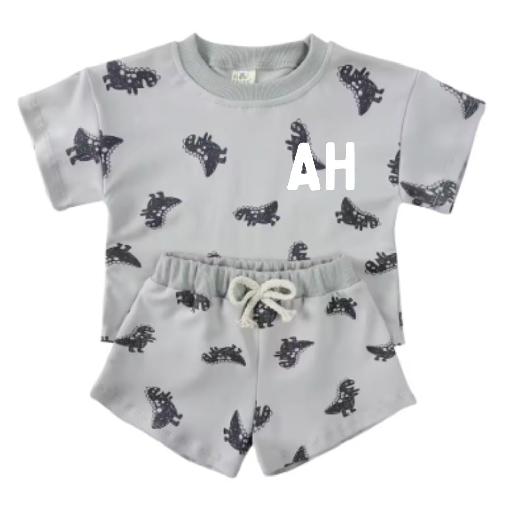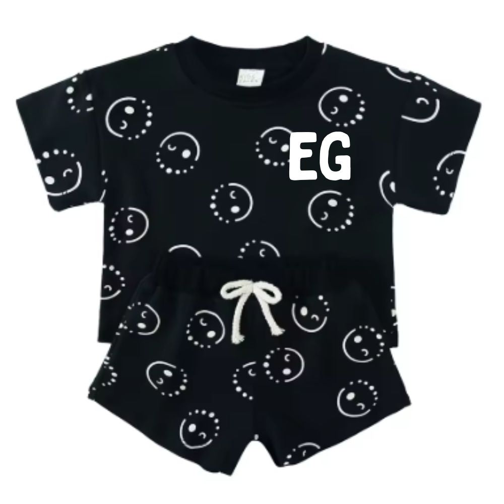 Elevate a kids wardrobe with this trendy two piece tee & shorts set. Customised with chosen initials, this set is the perfect fit this Summer.