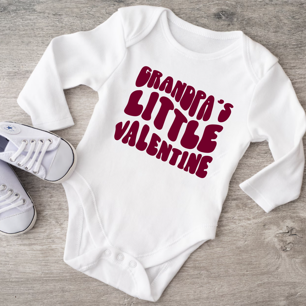 Can you deal with how cute this Bodysuit is?! Made for a Grandpa's girl or boy. Featuring 'Grandpa's Little Valentine' design, this is the perfect outfit for baby this Valentines. Made as that extra layer to keep them warm in this cold weather.