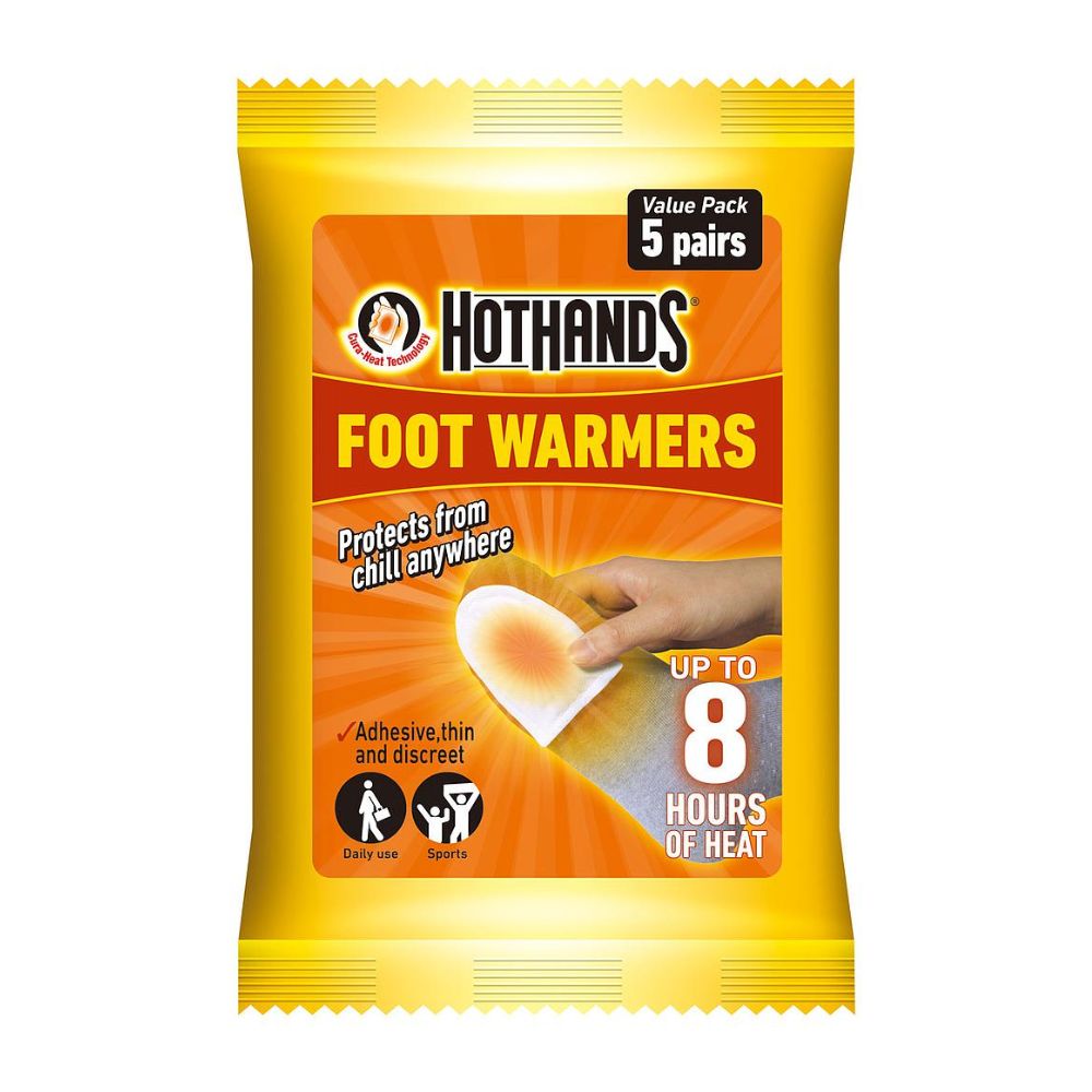 Hothands Toe Warmers are single-use air-activated heat packs that provide up to 8 hours of continuous warmth for the toes.