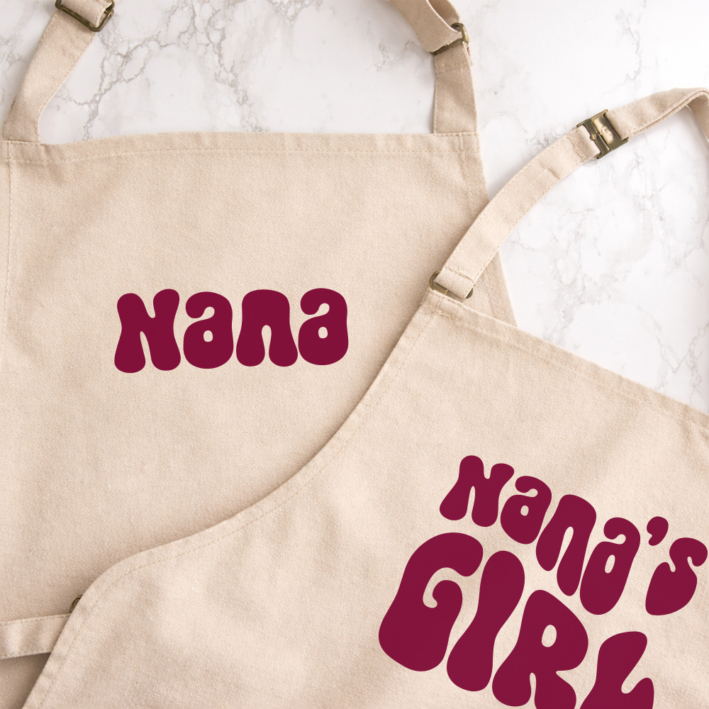 These gorge aprons are made for a Nana and Nana's Girl, featuring Nana & Nana's Girl slogans for an incredible gift at any time. Perfect for Mothers Day, Birthday or just because.