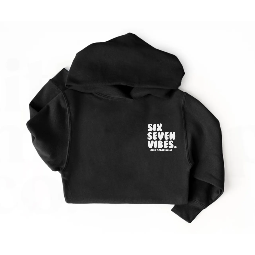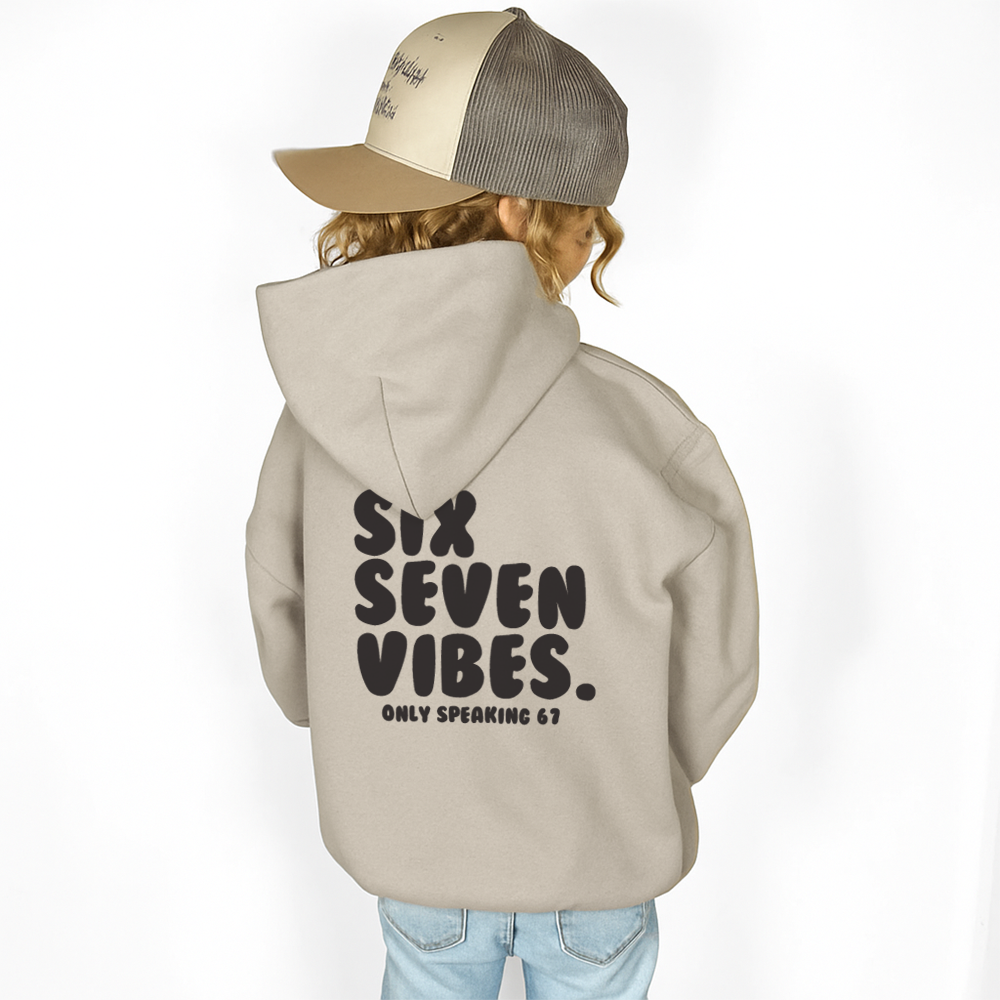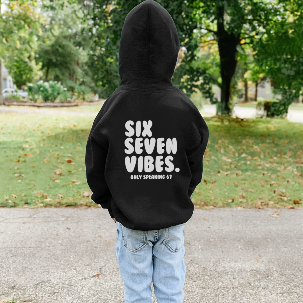 The perfect all year round hoodie for the kids that can't stop saying 67 .... A graphic hoodie guaranteed to get some laughs. Featuring front & back logos, with graphic slogan 'Six Seven Vibes'. Must have in any little ones wardrobe.