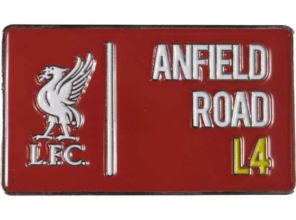 Official Liverpool Anfield Road L4 Street Sign Pin Badge Red