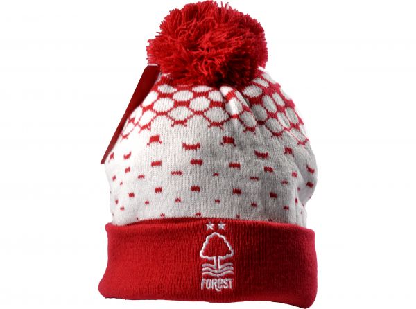 Official Nottingham Forest Basic Fade Knitted Turn Up Bobble Hat Red White