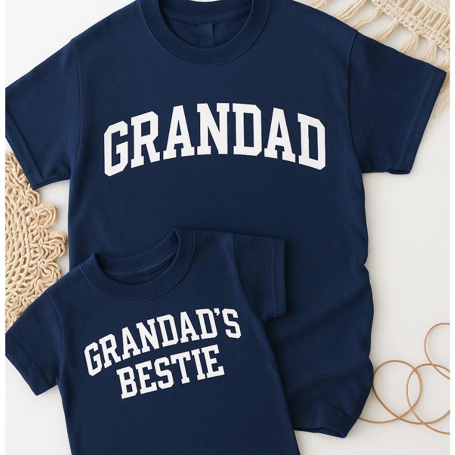 CLR Grandad & Grandad's Bestie College Matching Navy T-Shirts
