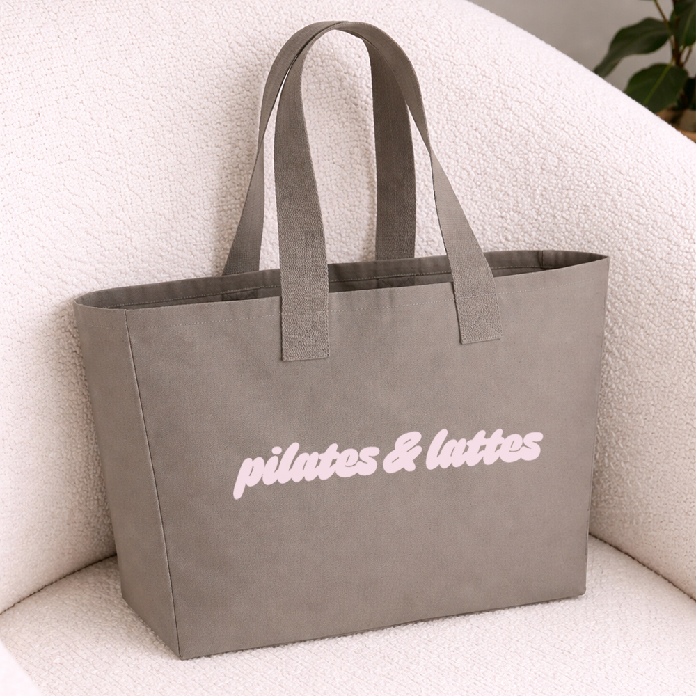 Designed for the Pilates obsessed! Keeping it cute but practical. This canvas tote is the perfect way to carry everything from water bottles and journals to activewear and extra layers. An oversized silhouette is soft and unstructured, lending itself to a more relaxed, effortless aesthetic. The neutral palette is perfect for any outfit.