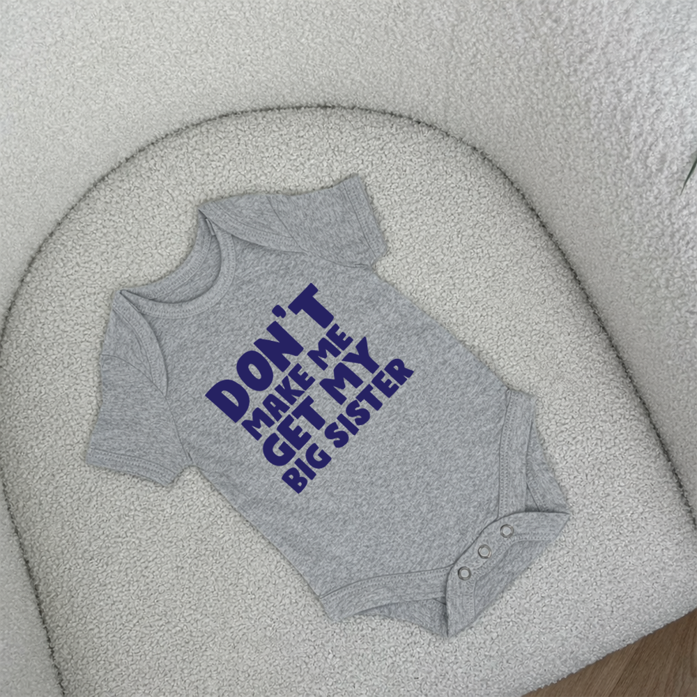 Don't Make Me Get My Big Sister Heather Grey Baby Vest