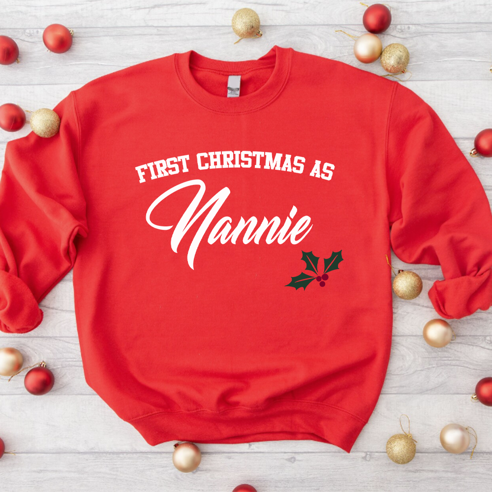 First Christmas As Nannie Classic Script Red Sweatshirt (MRK X)