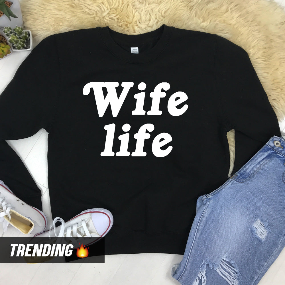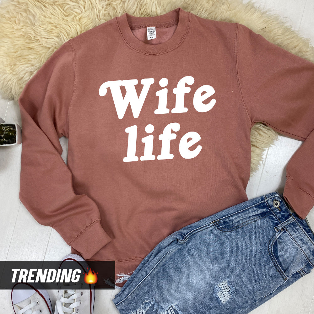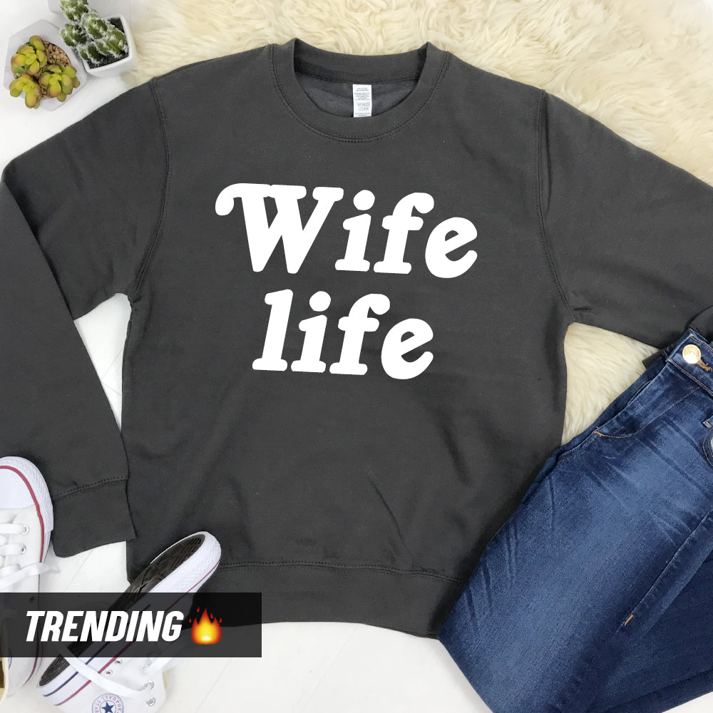 Wardrobe staple casual & comfy 'Wife Life' slogan sweatshirt. Sweatshirts are a 'casual-fit'. No need to order up!